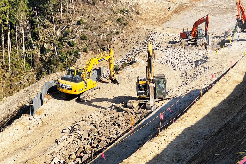 最後に造成工事では建築作業を行うために石積みや土溜めをし、土地の加工を行います。
